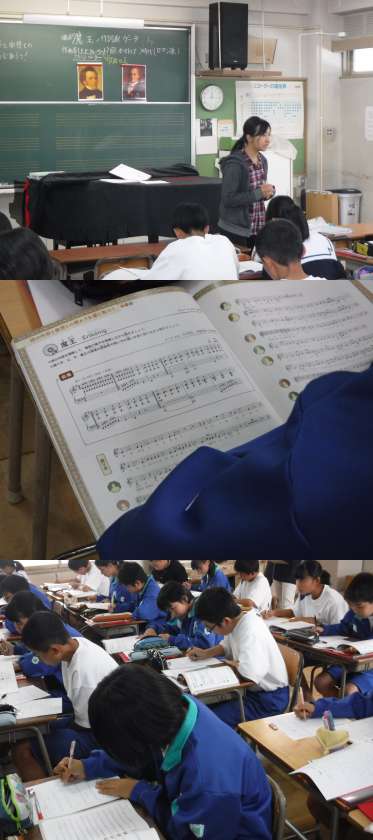 1年授業公開<11/5(月)> 公開日 2018/11/05 更新日 2018/11/05 学校だより 1年4組で音楽の授業が公開されました。学習目標は「詩の内容と曲想との関わりを感じ取ろう」です。詩の内容を理解した上で「魔王」を鑑賞し、ピアノ伴奏の表現の変化や歌い方の変化を捉え、曲想を感じ取りました。