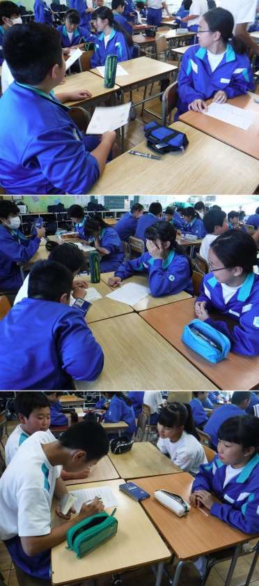 今週、ALTの先生が英語の授業に参加しています。ネイティブな発言の英会話に触れることができる、すばらしい体験となります。集中して取り組んで、ぜひ身に付けてください。写真は、2年6組の様子です。