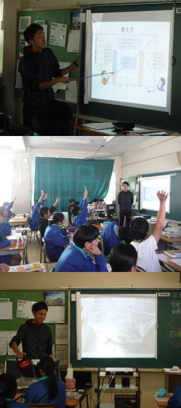 1年授業公開<11/12(月)> 公開日 2018/11/12 更新日 2018/11/12 学校だより 1年2組で理科の授業が公開されました。学習目標は「状態変化と質量・体積の関係を調べよう」です。ろうの液体から固体への状態変化とエタノールの液体から気体への状態変化を実際に見て、質量・体積がどのように変化するかクラスで調べました。