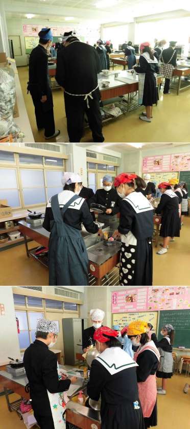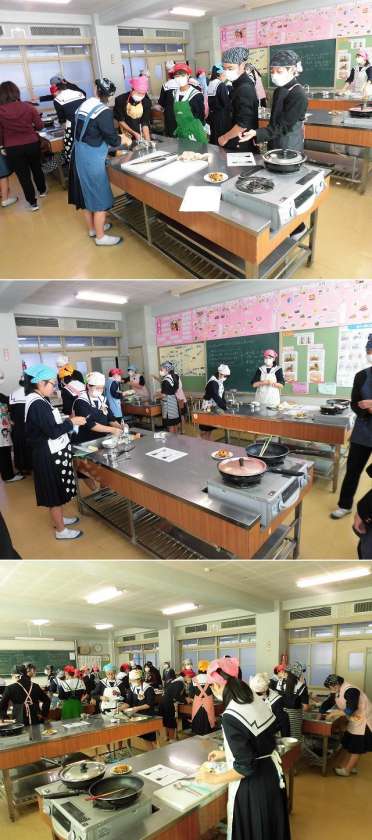 3年生調理実習<11/15(木)>3時限1組 公開日 2018/11/15 更新日 2018/11/15 学校だより 3年生家庭科の授業での調理実習の様子です。今日は3時限に1組が、大学いもと蒸しケーキをつくっていました。もうすぐ完成です。美味しく食べてくださいね。
