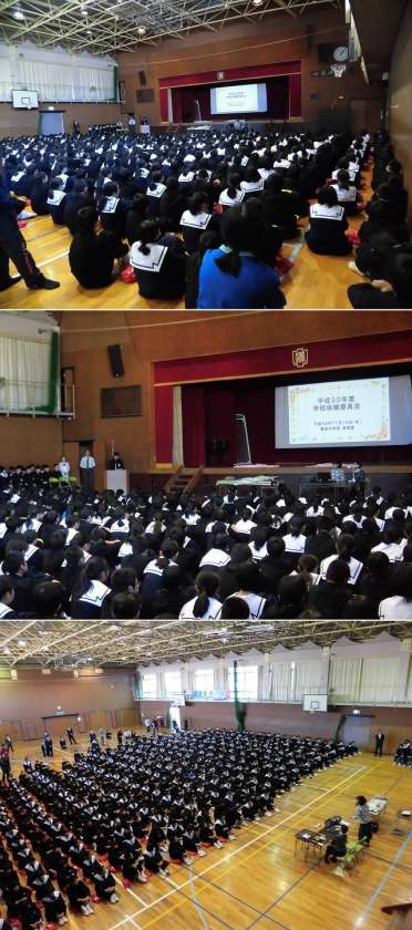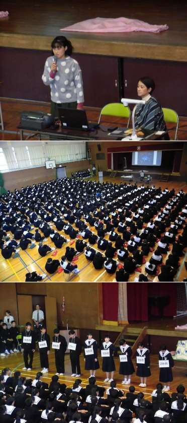 いのちの誕生について学び、自分の命を大切にしたいという自己肯定感を高め、思いやりのある生徒の育成をめざす行事です。進行は保健委員会の生徒が務め、途中には胎児の模型を示したり、実際にお産の様子を演技したりと、大活躍でした。