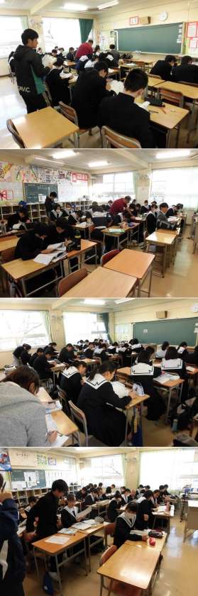 明日から第4回テストです 公開日 2018/11/21 更新日 2018/11/21 学校だより いよいよ明日11/22(木)から第4回テストが始まります。2学期締めくくりのテストとなります。生徒の皆さん、がんばってください! 写真は、3年生の学習会の様子です。みんな真剣にがんばっています。