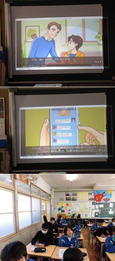 11/21(水)学級の時間、2年生が情報モラルについての授業を行っていました。画像や動画の扱い方についてです。