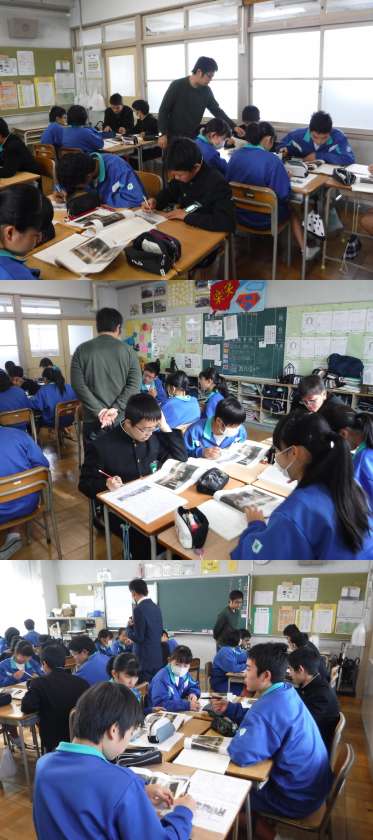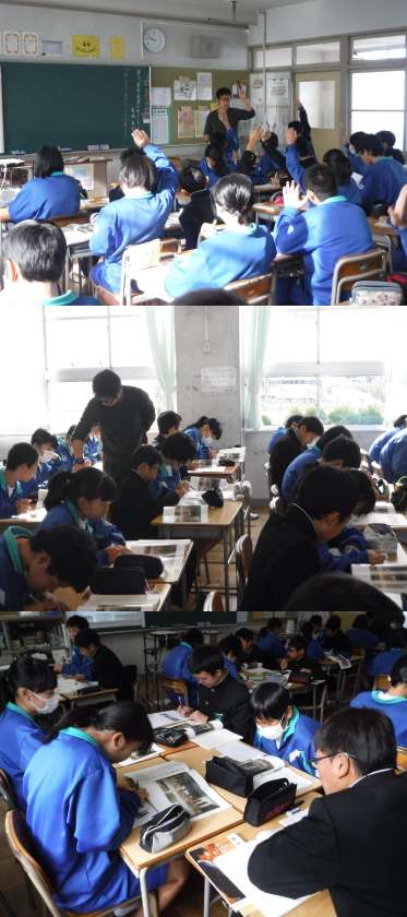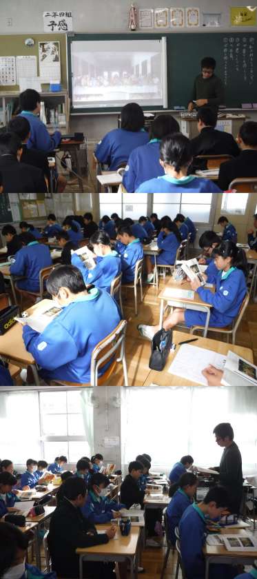2年4組で国語の授業が公開されました。学習目標は「絵を見て気付いたことを共有しよう」です。「最後の晩餐」の絵を見て気が付いたことを書き出し、グループで共有する活動に取り組むことで、評論文である本文に対する理解を高めました。