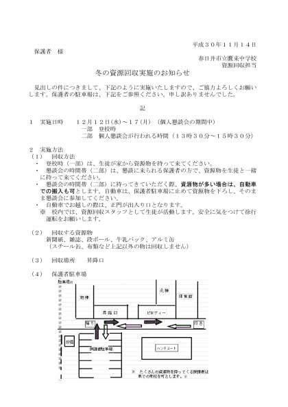 なお、懇談会の期間中には、冬の資源回収も行われます。回収するものは、新聞紙、雑誌、段ボール、牛乳パック、アルミ缶です。ご協力よろしくお願いします。