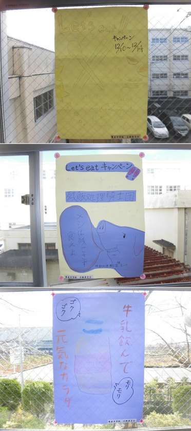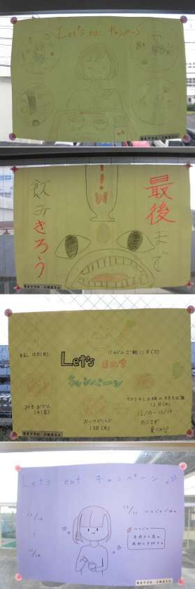 中学生は、まだまだ成長し続ける大事な年頃です。健康のために、しっかり食べましょう。写真は、給食委員と広報委員が作成した、キャンペーンポスターです。