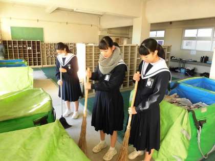 朝活週間1日目<12/13(木)> 公開日 2018/12/13 更新日 2018/12/13 学校だより 12/13(木)から、営繕委員が朝活週間として、朝にボランティアで清掃活動を行っています。寒い季節ですが、いい天気となり、気持ちよく活動してくれました。今日は3年生の当番です。ありがとうございました。この活動は、17(月)まで3日間行われます。