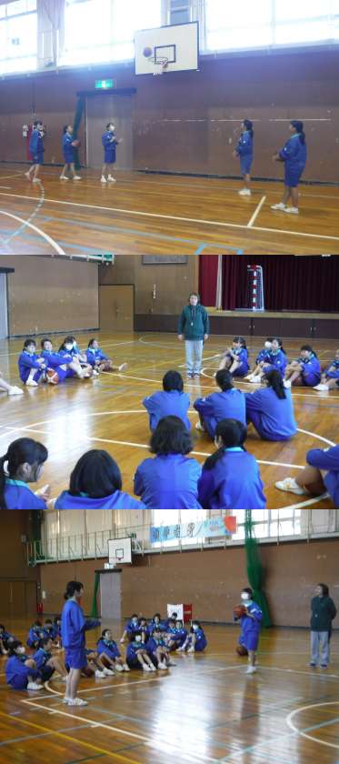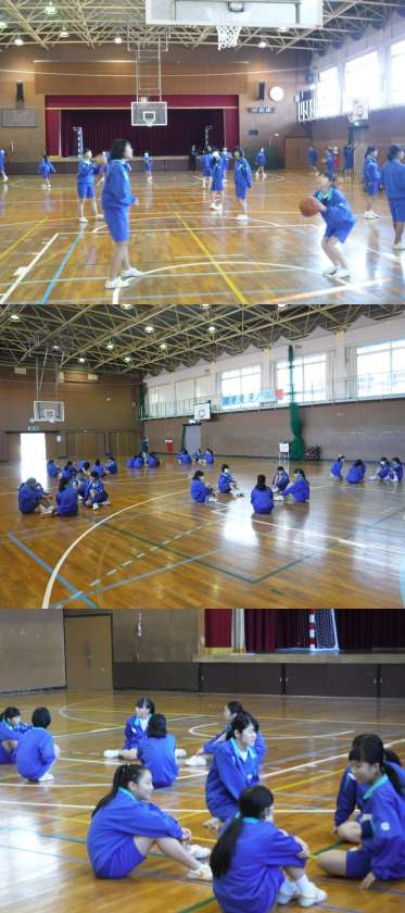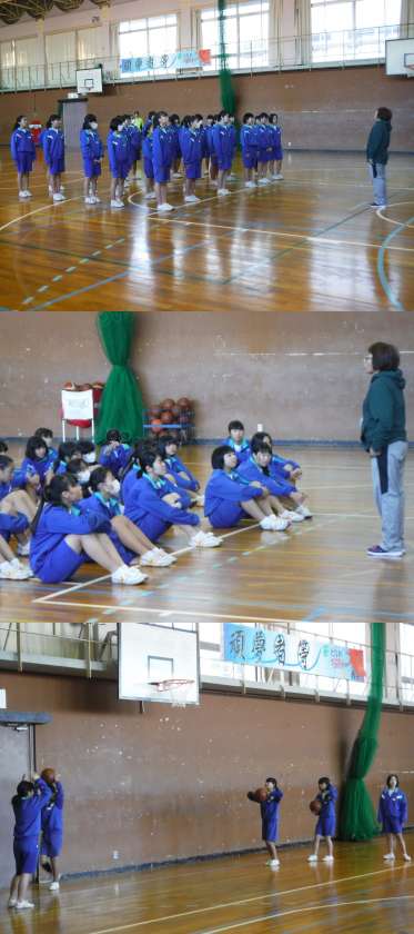 1年授業公開<12/14(金)> 公開日 2018/12/14 更新日 2018/12/14 学校だより 1年3・4組女子の保健体育の授業が公開されました。学習目標は「バスケットボールの基本的な技能を駆使しよう」です。パスをした人はその後どのように動いたらよいか等を考えながら、シュートやパスなどの基礎的な練習に取り組みました。授業の最後には、お互いに気が付いたことを伝え合う、振り返りの活動を行いました。