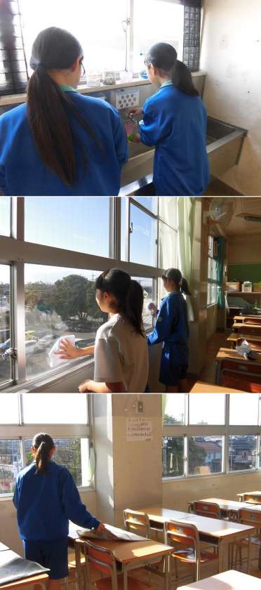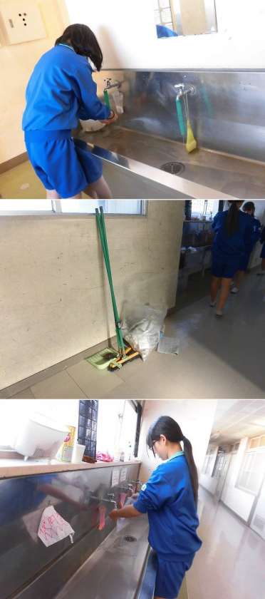 吹奏楽部の大掃除その1 公開日 2018/12/29 更新日 2018/12/29 部活動 吹奏楽部も、12/27(木)に大掃除です。いつも自分たちが練習に使用している、音楽室をはじめ各教室や廊下、トイレなど、感謝を込めてきれいにしてくれました。鷹来中を美しくしてくれて、ありがとう!