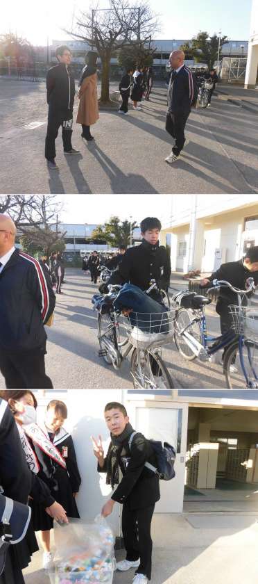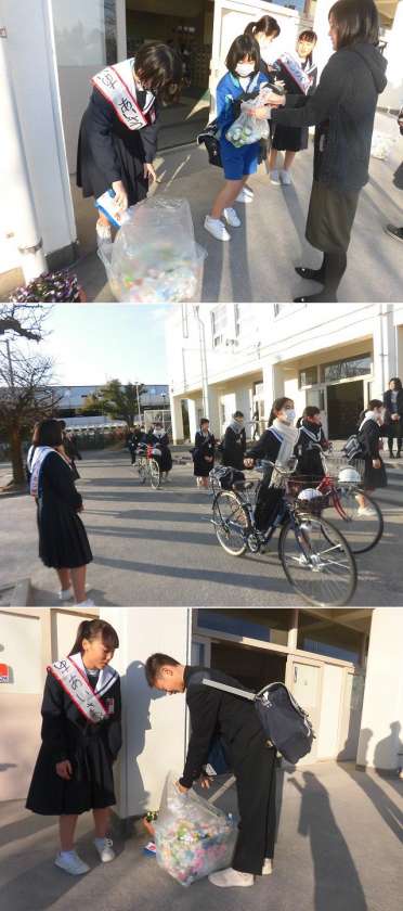 愛颯運動・エコキャップ回収最終日<1/25(金)>その1 公開日 2019/01/28 更新日 2019/01/28 生徒会 1/25(金)、愛颯運動最終日の様子です。本日は、1・3年生活委員が手伝ってくれました。ご苦労様でした。 なお、エコキャップ回収にも、たくさんご協力いただき、誠にありがとうございました。