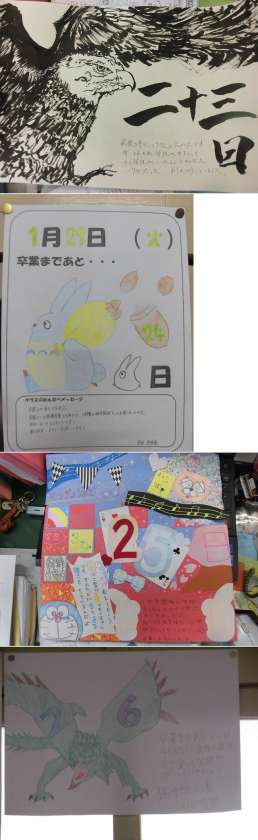 写真は、3年生の生徒が制作した、カウントダウン掲示物です。本日、卒業まで残り23日となりました。