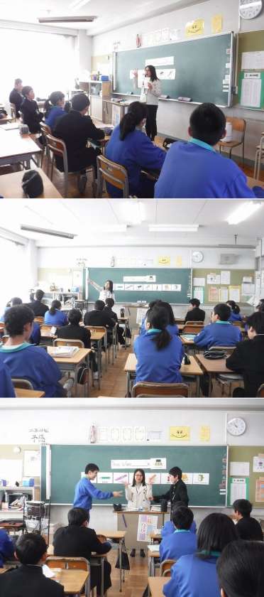 今週、ALTの先生が英語の授業に参加しています。写真は、2年生の授業の様子です。今年度も明日2/1(金)が最終日となります。どんどん英会話に挑戦してみましょう。