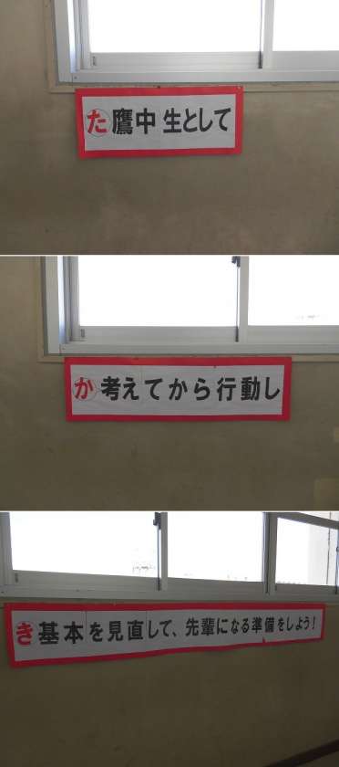 1年生は、学年生徒会の話し合いで、学年目標を決めました。「鷹中生として、考えてから行動し、基本を見直して、先輩になる準備をしよう!」です。あと2ヶ月で2年生になります。先輩となるため、意識を高めましょう。