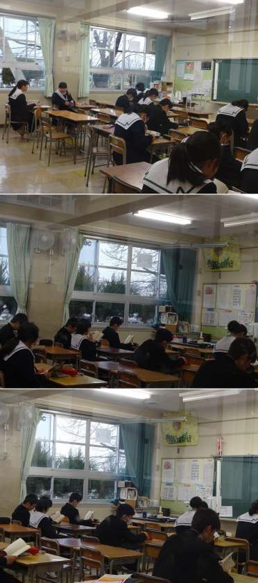 私立高校一般入試2日目<2/6(水)> 公開日 2019/02/06 更新日 2019/02/06 学校だより 2/6(水)、私立高校一般入試の2日目です。朝は何とか天気ももって、よかったですね。教室も人が少なく、さびしいですが、みんなの健闘を祈っています。がんばってください!