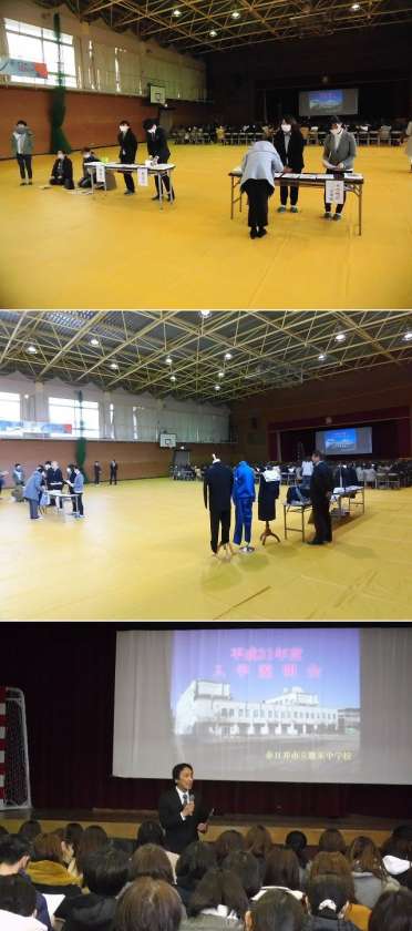 入学説明会<2/7(木)> 公開日 2019/02/07 更新日 2019/02/07 学校だより 2/7(木)午後、本校体育館において、4月入学予定の小学生保護者対象に、入学説明会を行いました。寒い中お越しいただき、本当にありがとうございました。4/4(木)の入学式、お子様の登校を楽しみにしています。お子様の残り少ない小学校生活も、健康と安全に気を付け、思い出深いものとなるよう願っています。