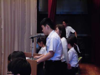 5月8日のST後に生徒会と各委員の委員長が集まり、9日に行われる生徒総会のリハーサルを行いました。