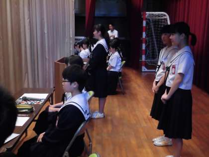9日の生徒総会では、みんなを代表して話をする委員長たちの言葉をしっかりと聞きましょう。