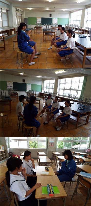 部活動 吹奏楽部 公開日 2019/05/13 更新日 2019/05/13 部活動 5月13日は野外学習で2年生がいないこともあり、3年生が1年生を指導する場面も多くみられました。 吹奏楽部では、3年生が1年生に手本を示したり、筋トレをしたりする場面がありました。あこがれの先輩に追いつき、追い抜けるようがんばってください