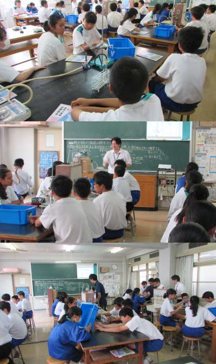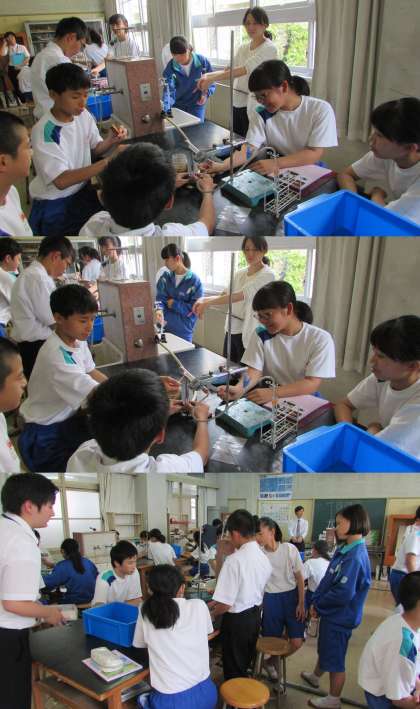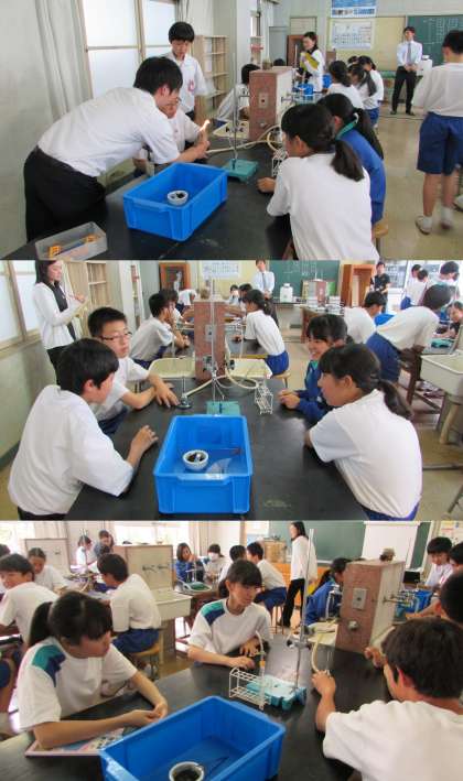 酸化鉄を熱するとどうなるかという実験でしたが、教育実習の先生が、実験の方法を丁寧に説明してくれて、みんな試験管をセットし熱していきました。最後に燃え残ったものをこすると光沢がでてきました。
