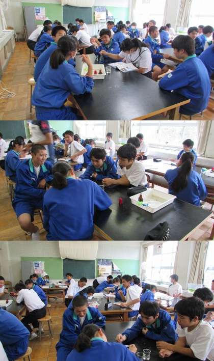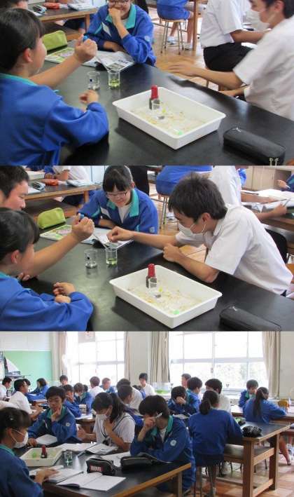 3−5 理科 中和の実験 公開日 2019/06/12 更新日 2019/06/12 学校行事 6月12日に3年5組は理科の中和の実験を行いました。 液体をピペットで一滴ずつ落としながらかきまぜていきました。 みんな色が変わる様子を食い入るようにみています。 さすが3年生、集中して実験に取り組むことができましたね。