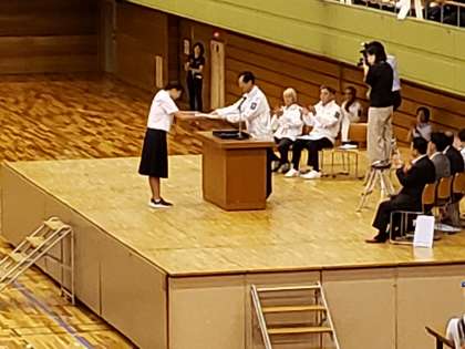 6月23日(日)に行われた春日井市総合体育大会開会式の中で、本校生徒が春日井市スポーツ協会表彰の優秀賞を授与し、代表で表彰されました。