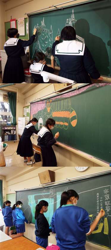 卒業式が終わるまでお見せできなかったのが残念なほど、どのクラスも力作をかいてくれました。