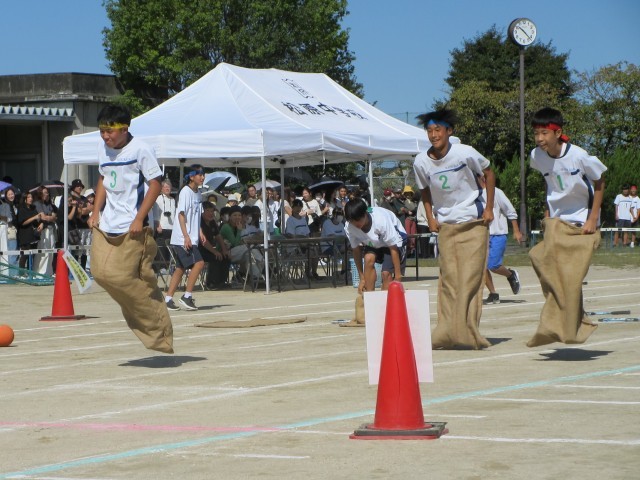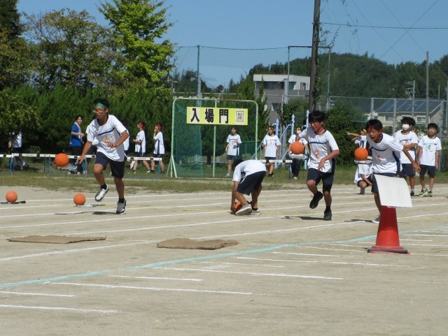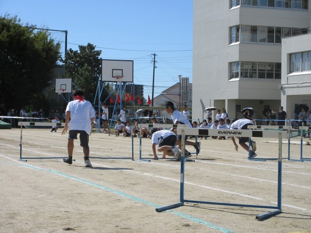一人障害物競走の様子です。障害物のたびに順位が二転三転し、盛り上がりました。