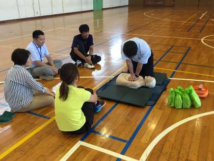 今日の授業後に現職教育として救命蘇生法の講習を春日井市消防署の署員さん教えていただきました。
