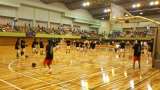 夏の大会、バスケットボールは総合体育館が会場です。高森台中にとっての初戦は松原中が対戦相手です。間もなく開始です。いつも通りの力を出して頑張りましょう!