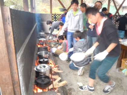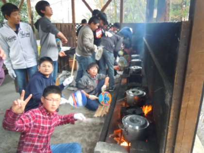 今夜予定されていたキャンプファイヤーは延期になりましたが、プチキャンプファイヤー状態のところもありました。おいしいカレーができるといいですね。