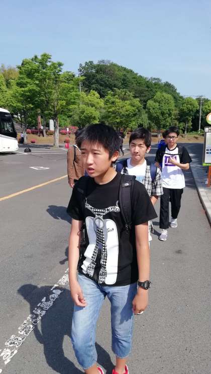 ABC組バスから降りてきました。