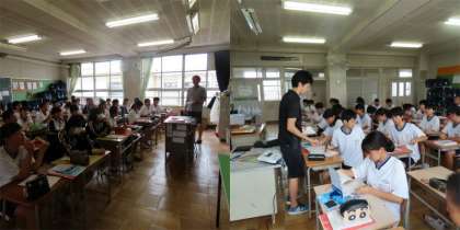 1番目は2クラスの数学、2番目は理科、3番目は技術授業の様子です。