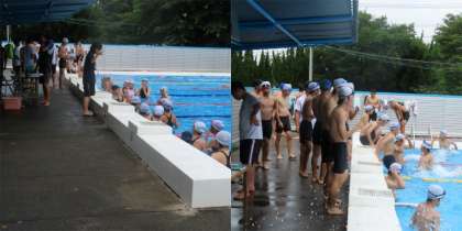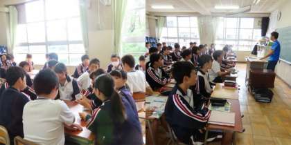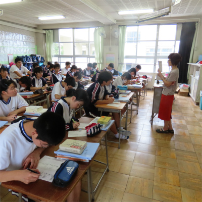 1番目は男女体育で水泳、2番目は2クラスの社会、3番目は国語授業の様子です。