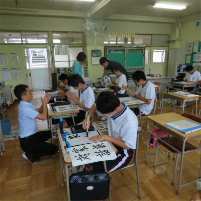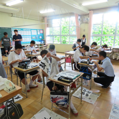 国語の時間に書写(毛筆)の練習をしていました。気合いの入った字を書いている生徒がいました。