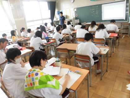 夏休みまで数日となり、1学期の学習もまとめの時期となりました。授業でもワークや夏休みの課題を使って復習を進めています。苦手な所、分かっていない所を明らかにし、さらに練習に取り組んでいけるとよいですね。1枚目は理科、2枚目は国語、3枚目は数学の授業です。