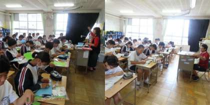 1番目は、国語でスピーチをしていました。2番目は社会、3番目は家庭科・理科授業の様子です。