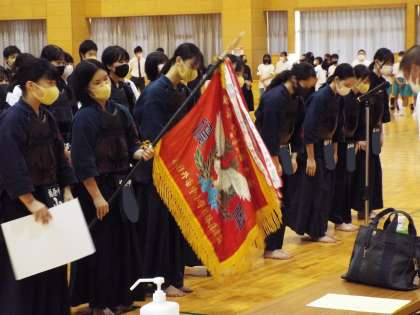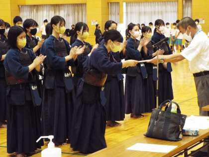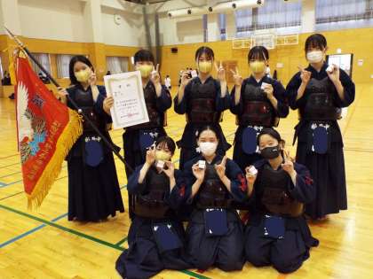 女子剣道部団体戦は、決勝戦も見事勝ち抜き、優勝しました。