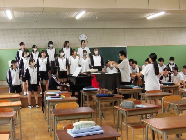 3年生の授業です。(英語・音楽・理科)音楽の授業では、合唱発表会に向けて最終の仕上げに入っています。