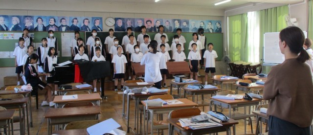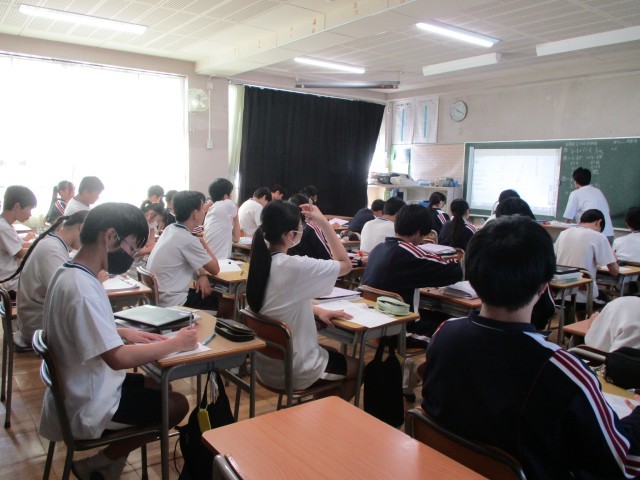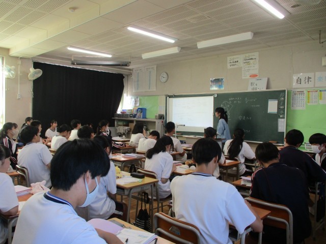 3年生の授業(英語・数学・数学)と1年生の合唱の様子です。