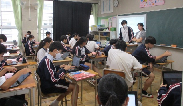 2年生の授業です。(社会・英語・理科)集中して取り組んでいます。
