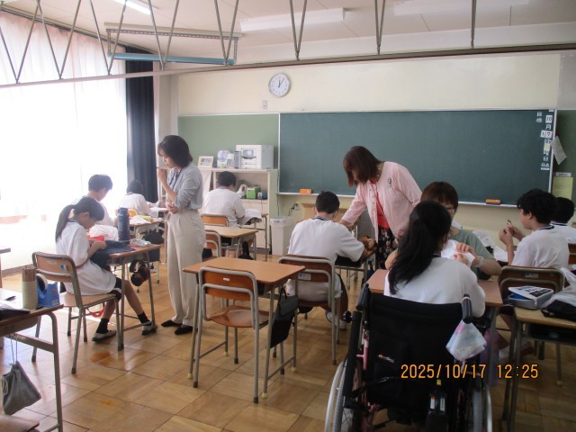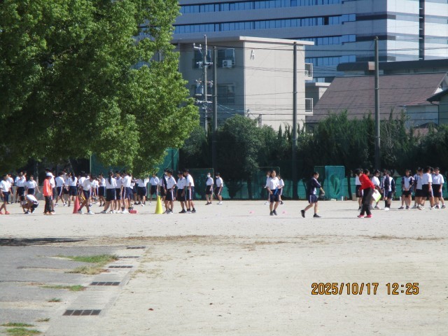 最初の写真は2年生の理科の授業です。真ん中はABCD組の家庭科の授業です。運動場では1・2年生が体育大会に向けて一生懸命練習をしている様子です。