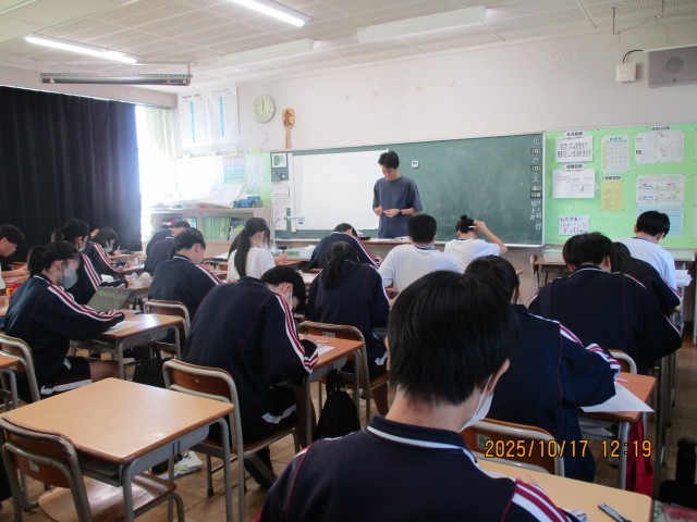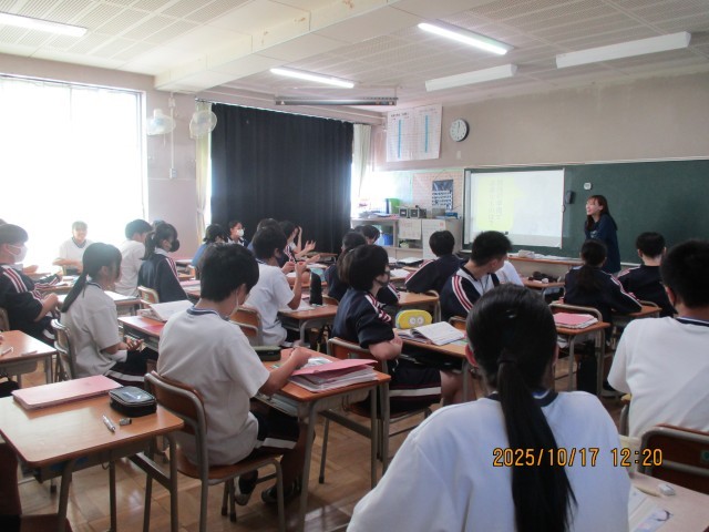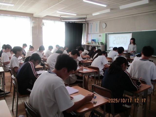 3年生の授業です。(英語・国語・数学・数学)国語は「奥の細道」について学習しています。数学については単元の振り返りを行っています。