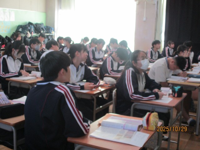 3年生の授業の様子です。(家庭科・社会・体育)家庭科は、自分たちの生活とエネルギー消費についての学習です。