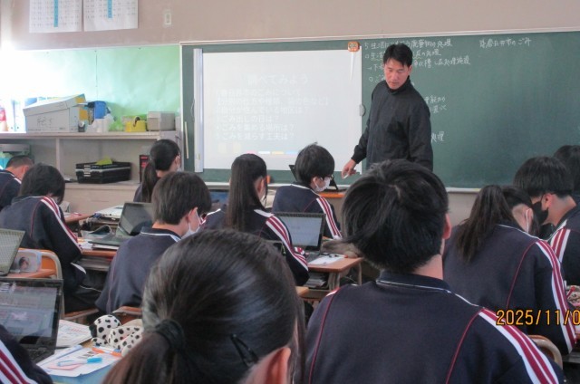 3年生の授業です(国語・社会・保健体育)保健体育では生活にともなう廃棄物について学んでいます。