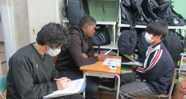 2年生の授業です。(社会・英語・国語)英語については会話のテストを行っています。
