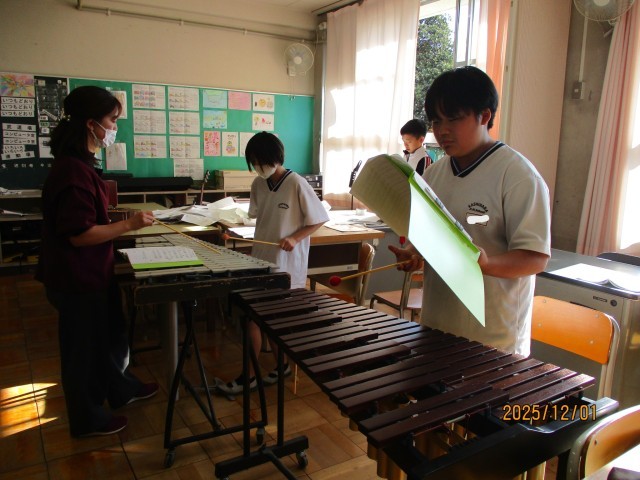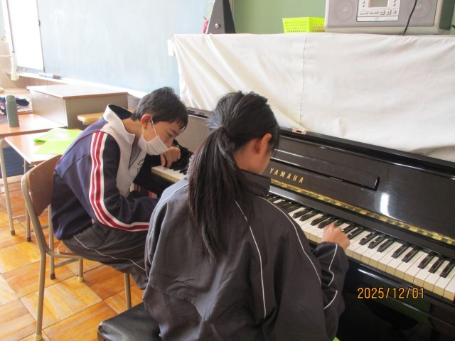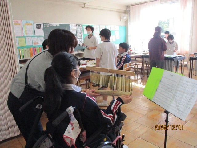ABCD組の音楽の授業です。リズムに合わせて一生懸命練習しています。