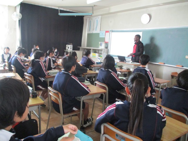 1年生(国語・英語)と3年生(体育)の授業の様子です。英語はALTの先生が話す英語を一生懸命聞いている様子です。