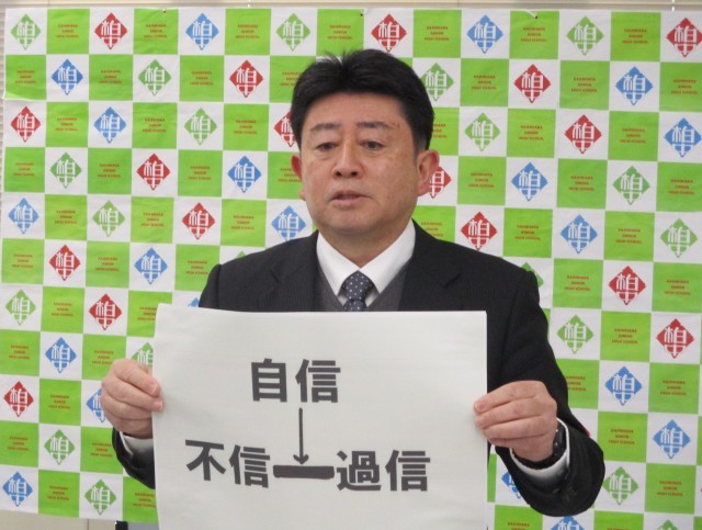 『2学期は多くの行事があった中で、特に印象に残っているのは「体育大会」での皆さんの姿です。学年競技を自分たちで企画し、実行するという大きな「挑戦」がありました。その「挑戦」の際、皆さんは「自信(自分を信じる心)」を持つことができたでしょうか。「自信」は、「努力に費やした日々の積み重ね」から生まれるのではないでしょうか。新しい年を迎えるにあたり、皆さんは次はどのようなことに「挑戦」しますか? そして、それをやり遂げる自信を持つために、どんな努力を積み重ねますか? 冬休みの間に、ぜひ自分と向き合って考えてみてほしいと思います。』