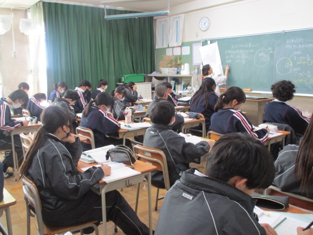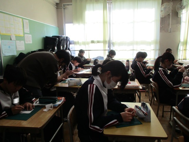 1年生の授業の様子です。(数学・美術・家庭科)家庭科では、調理器具の使い方について学んでいます。