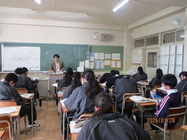 1年生の授業です。(英語・英語・国語・社会)国語の「少年の日の思い出」では、別の人物の視点から文章を書き換えることが学習目標です。
